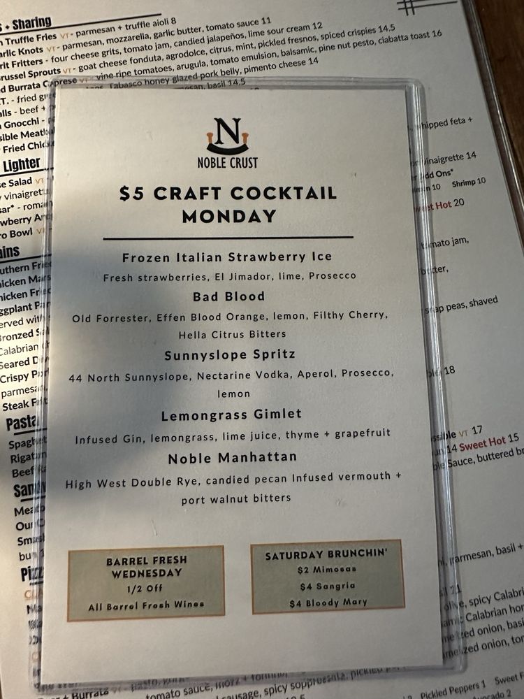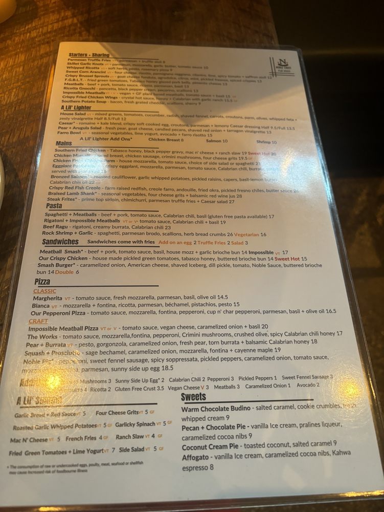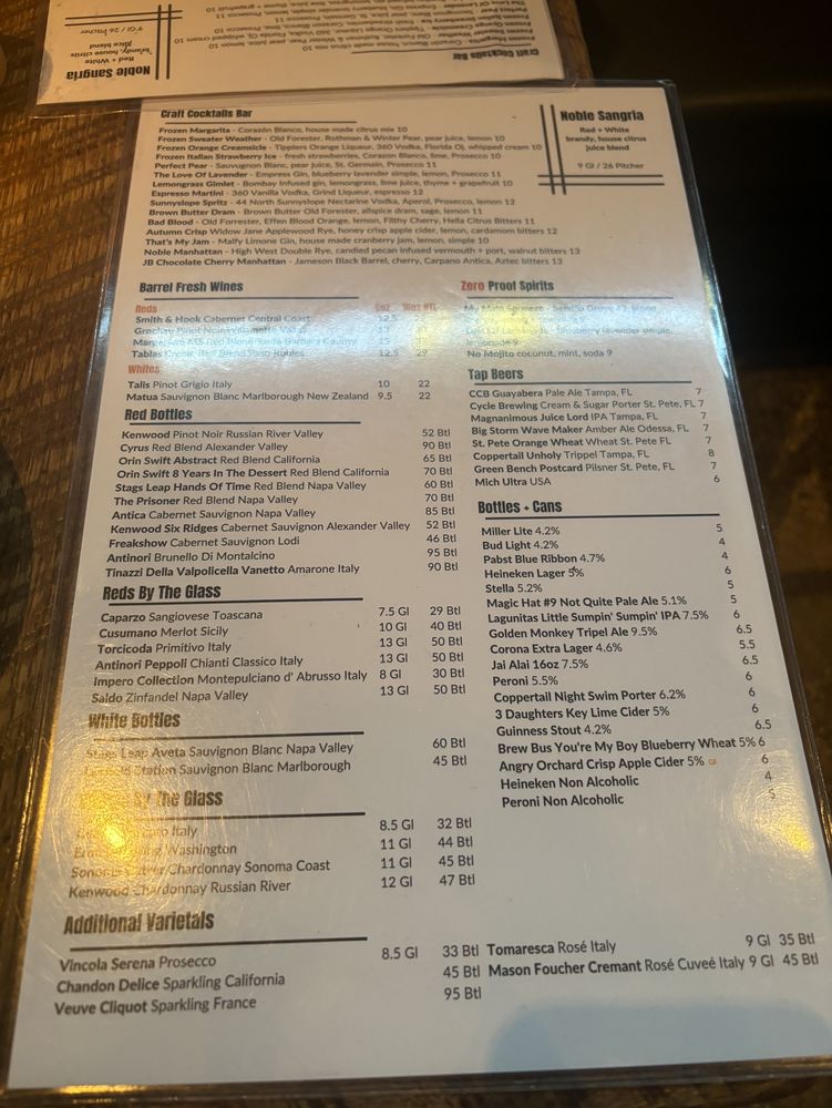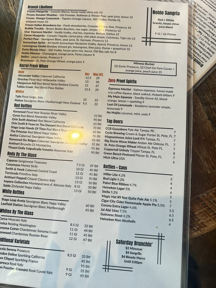 Introducing the menu at Noble Crust in St. Petersburg, FL, where Italian and American cuisine collide to create a delightful dining experience. Start with unique and shareable starters like F.G.B.L.T. with fried green tomatoes, crispy shrimp calamari, and meatballs. Enjoy fresh and flavorful salads such as the house salad and pickled beet caprese. Indulge in hearty pasta bowls like rigatoni with beef ragu or spaghetti with meatballs. Customers rave about the beef ragu rigatoni and garlic knots. The ambiance is described as clean and pleasant, perfect for larger groups. Don't miss out on the $5 drink specials and the friendly service at Noble Crust. Make sure to make a reservation in advance to avoid the bustling crowds. This trendy spot is a must-visit for all pizza lovers seeking a memorable dining experience.